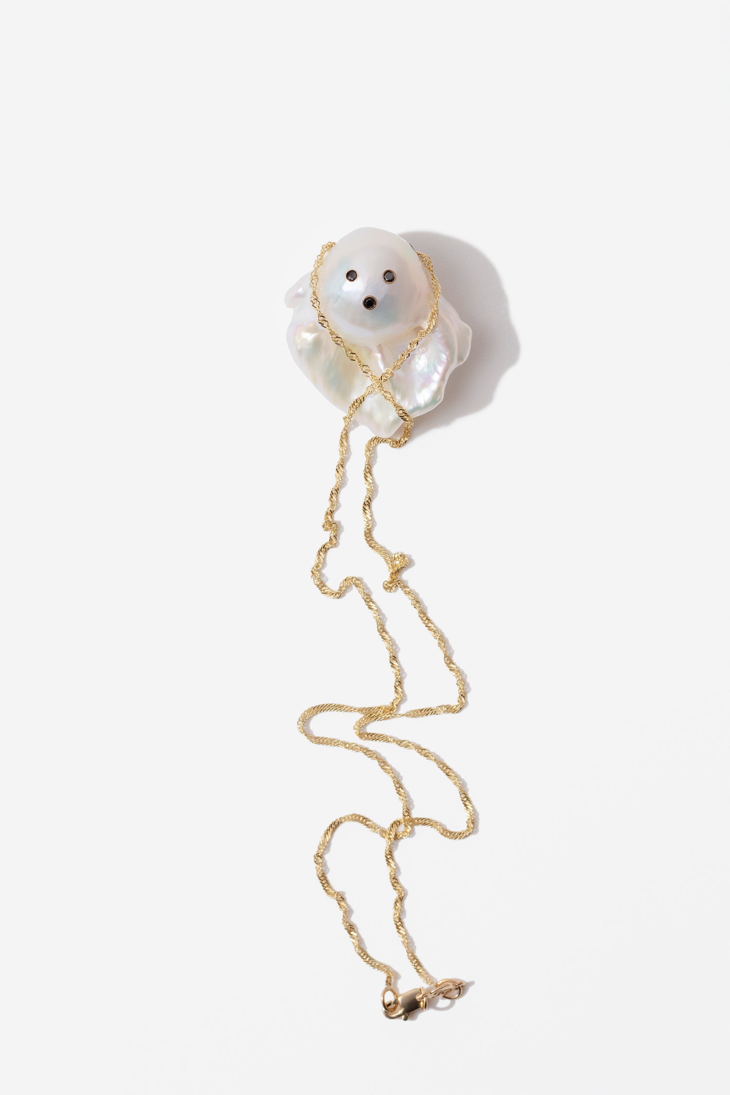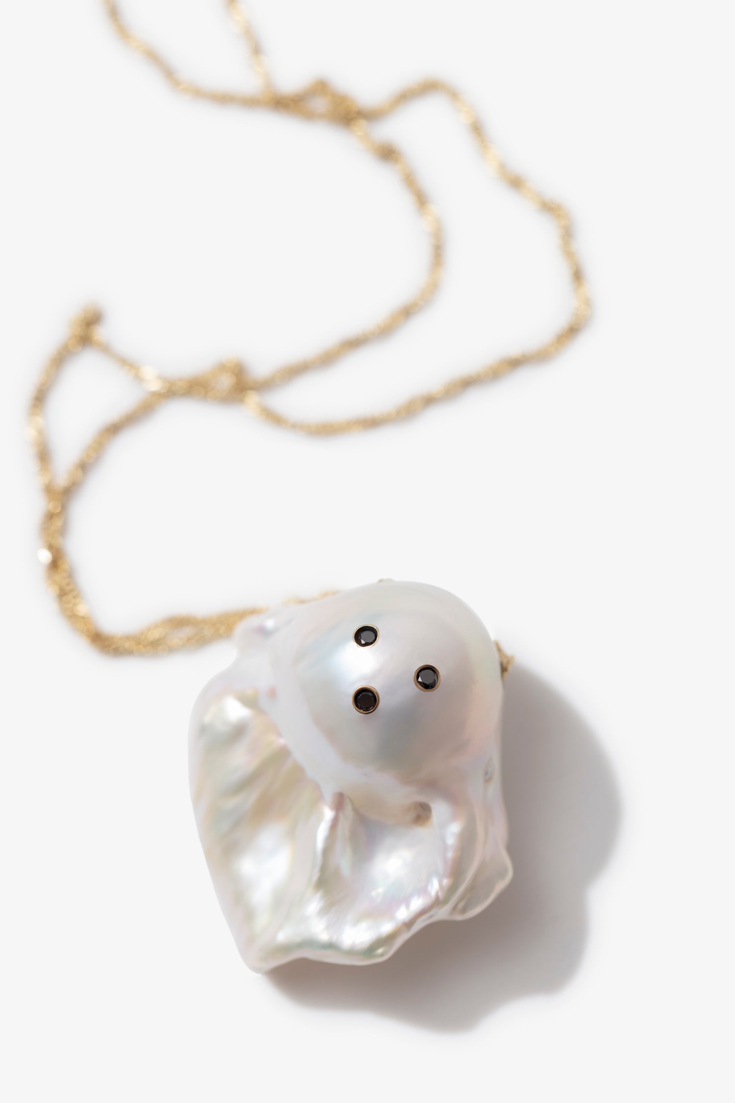 Baroque pearl, set in 14-karat gold and black diamond eyes.
