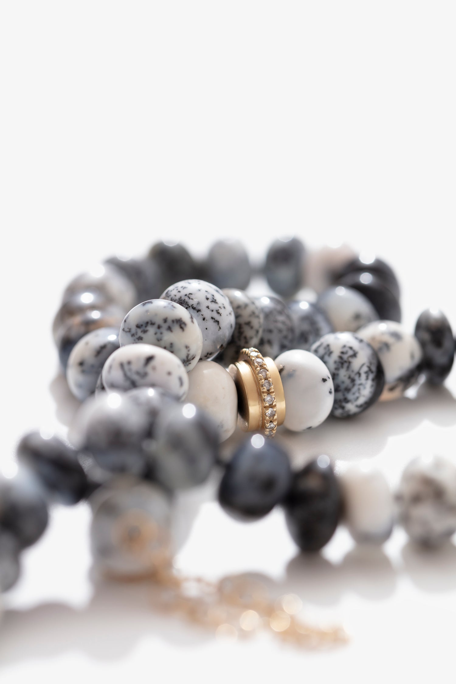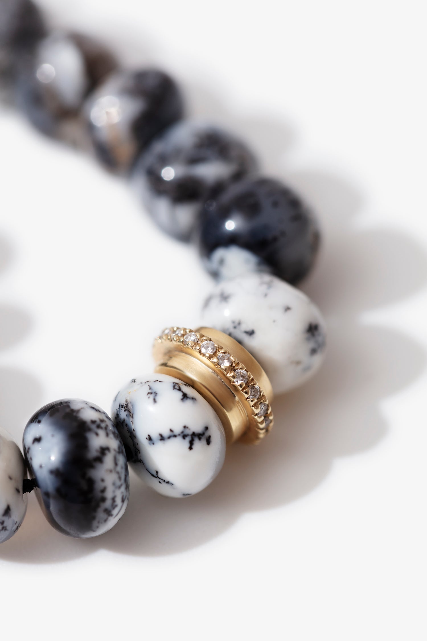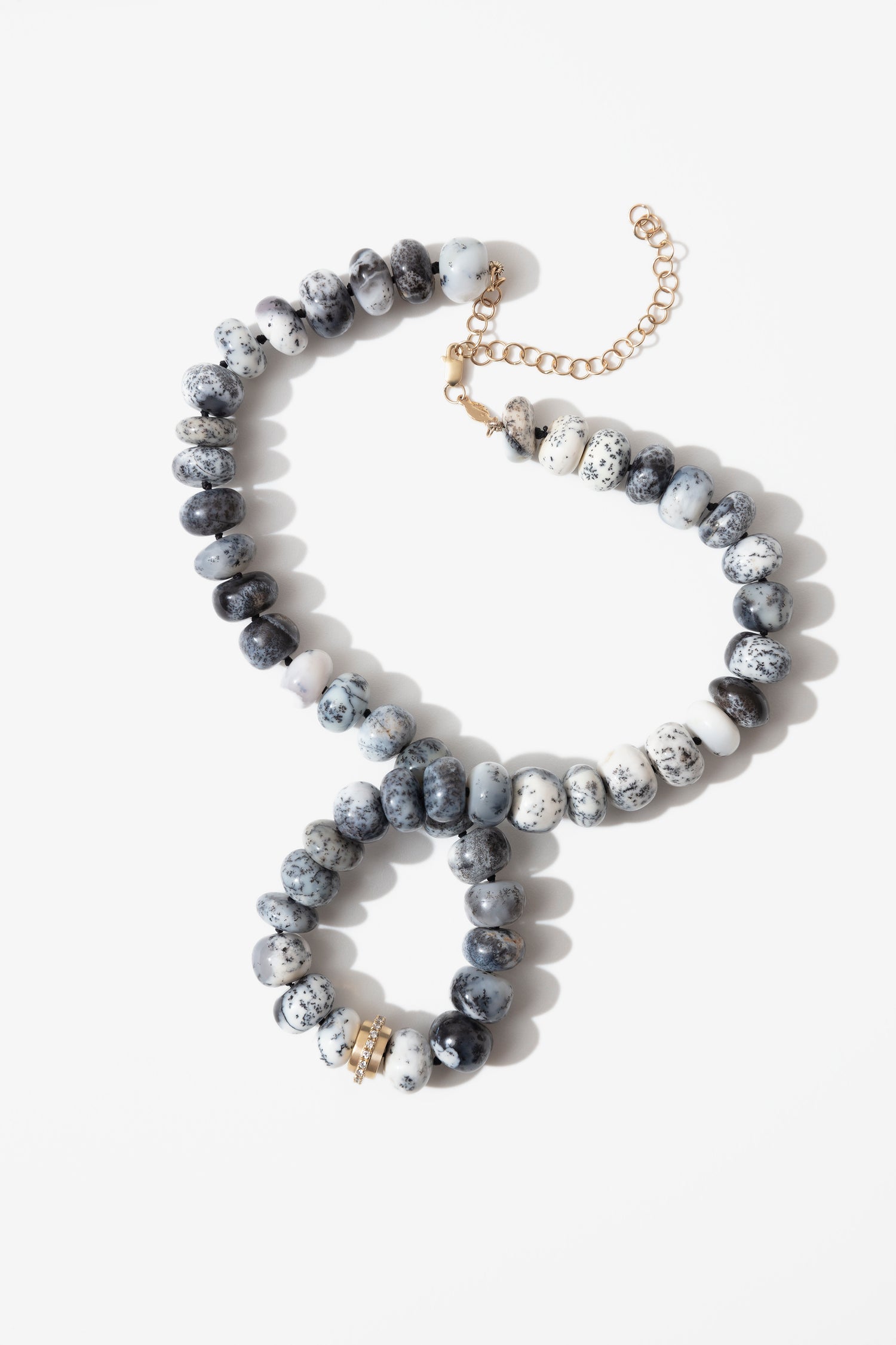 Dentrite Opal necklace, set in 14-karat gold and sparkling white diamonds.