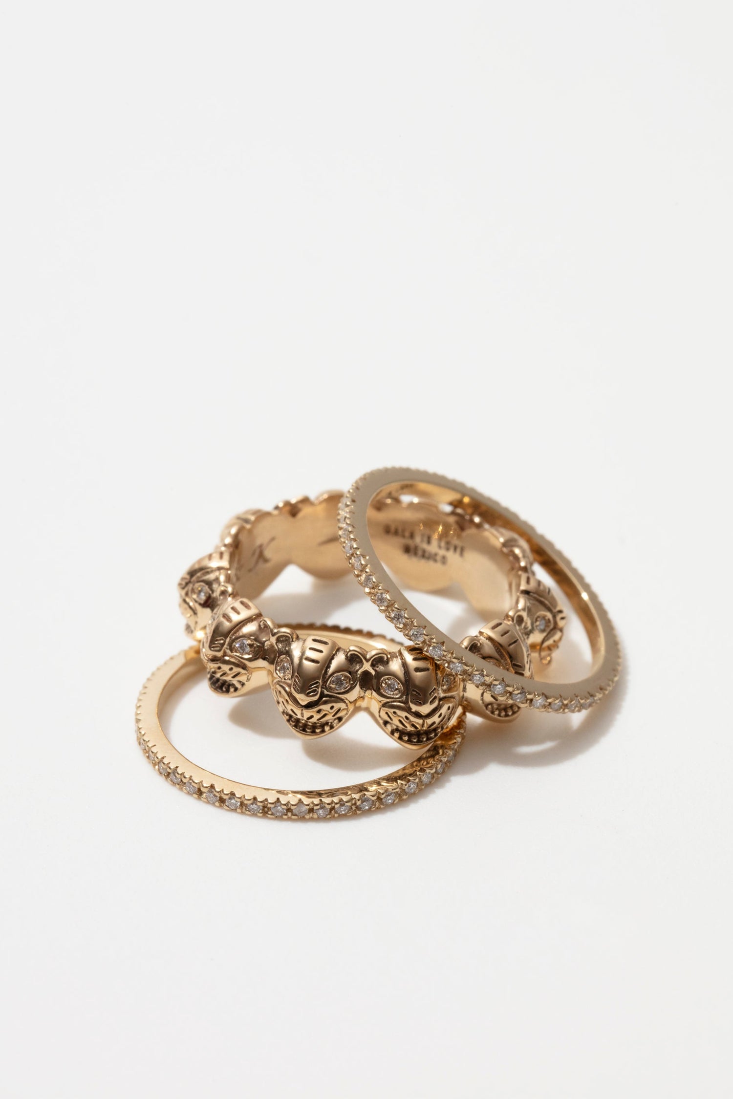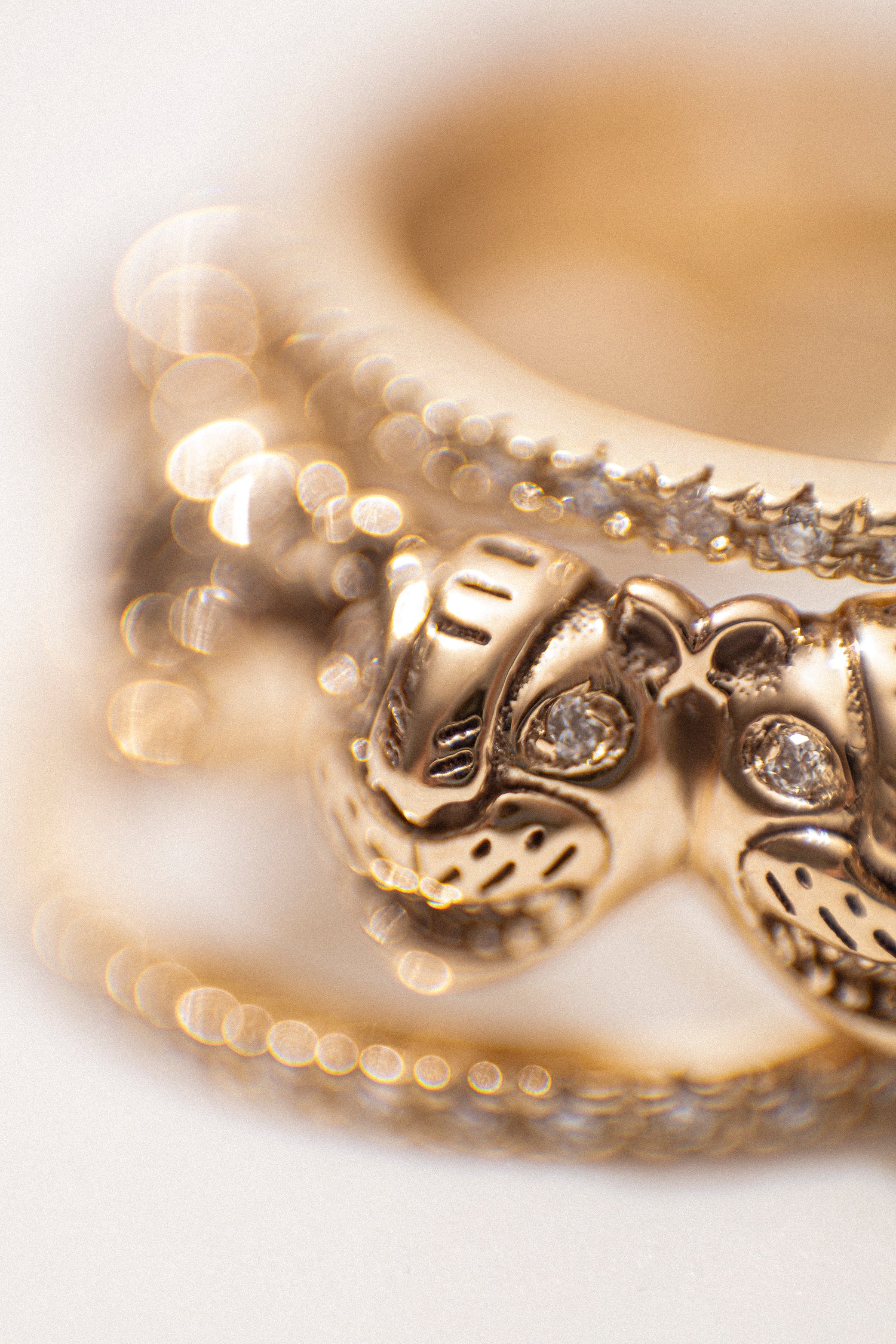 A symbol of untamed elegance, each jaguar stares out with quiet fire — a whisper of light set in gold.