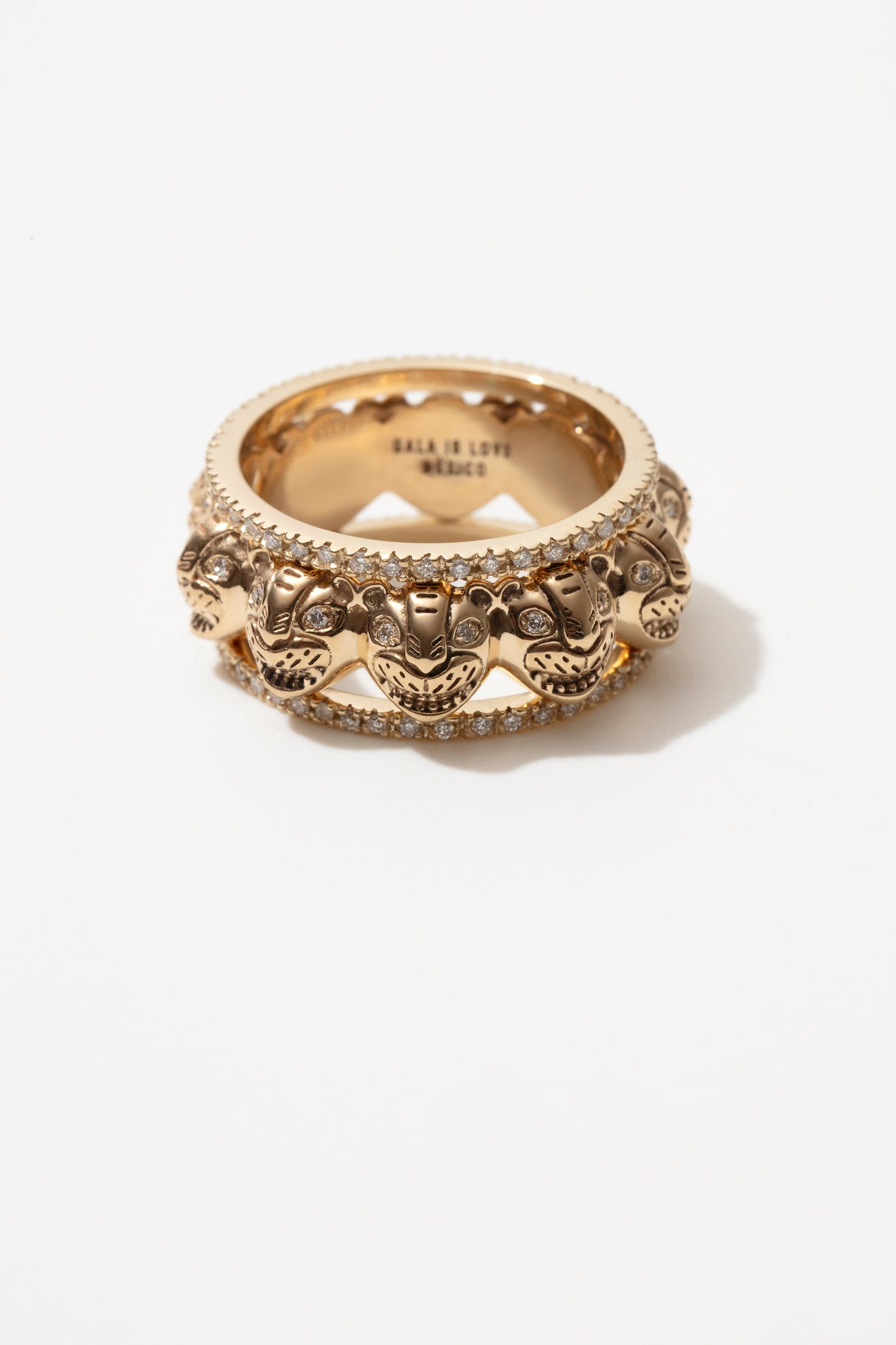 From the Jaguar Collection, this eternity band is crafted in 18-karat gold and set with brilliant diamond eyes on each sculpted feline.