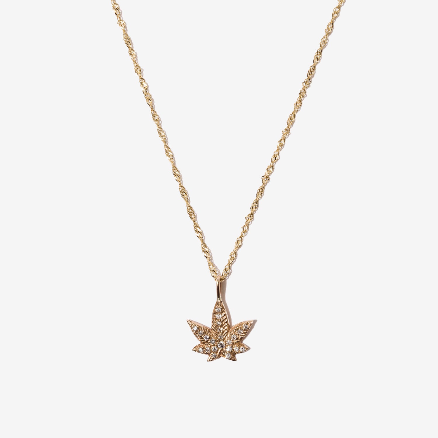 14-karat gold MJ leaf, set with shimmering diamonds.