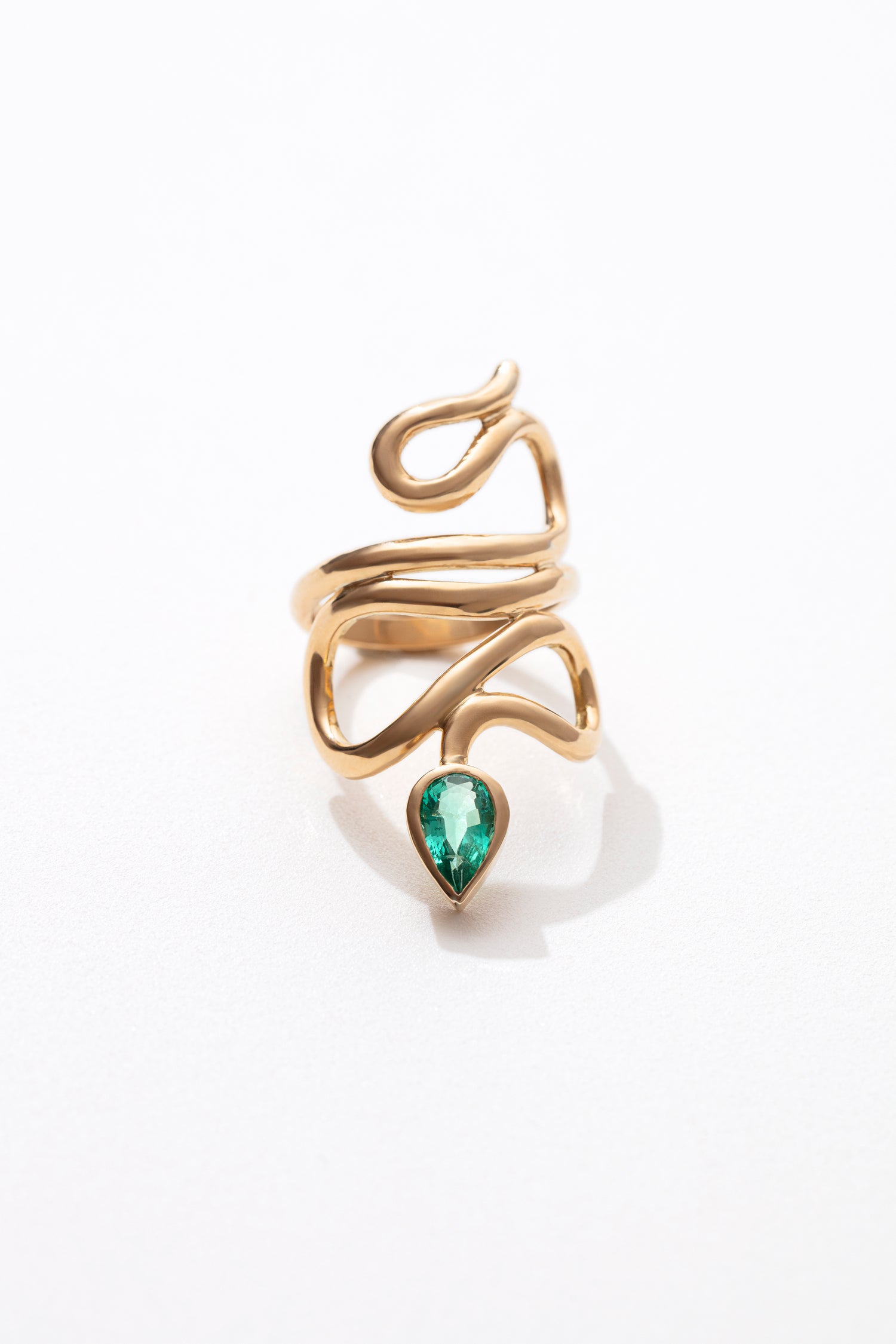 Crafted by hand in our Mexico City atelier by artisans who use time-honored techniques, so you can always expect a flawless finish. Designed to elegantly wrap around your finger, this ring is made from 18-karat gold and it's set with a sparkling faceted emerald. Wear this swirling piece on your index finger alongside other chic pieces.